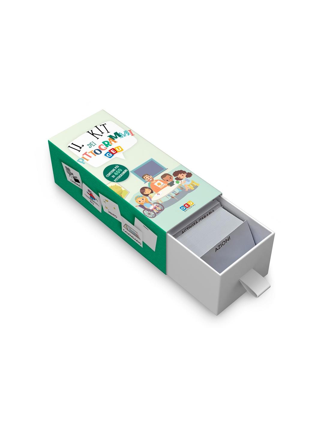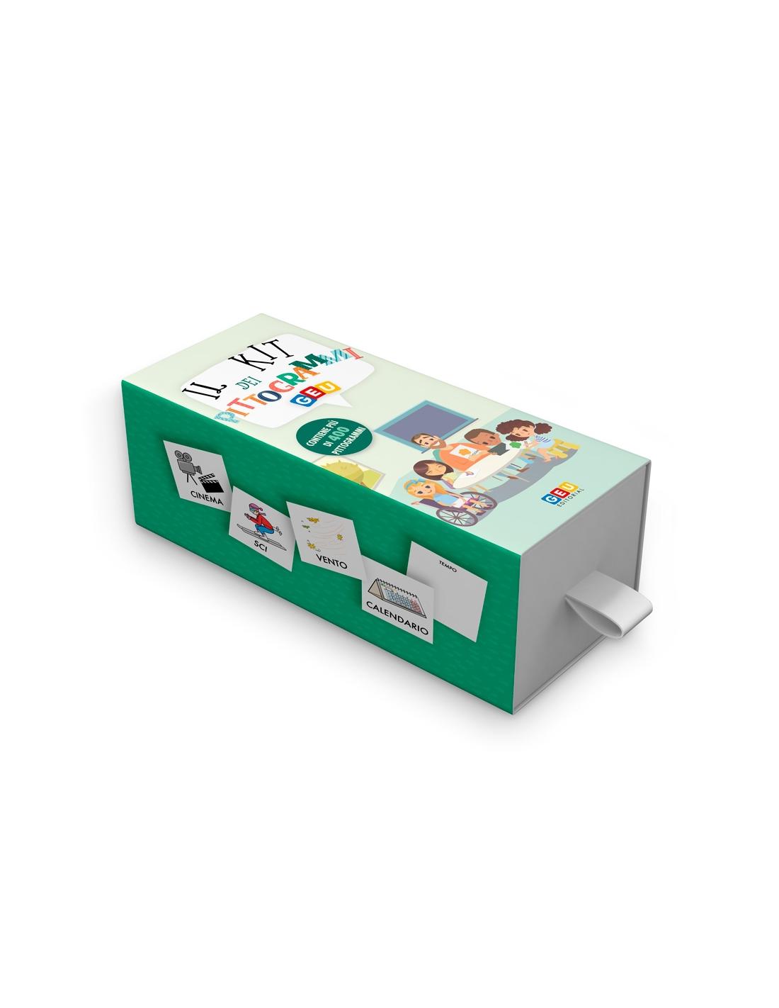 Il Kit dei Pittogrammi è uno strumento pratico per sviluppare e facilitare la comunicazione. Una raccolta di pittogrammi in formato tessera (7x7 cm) e in lettere maiuscole: utilizzabile sia a scuola che in casa.