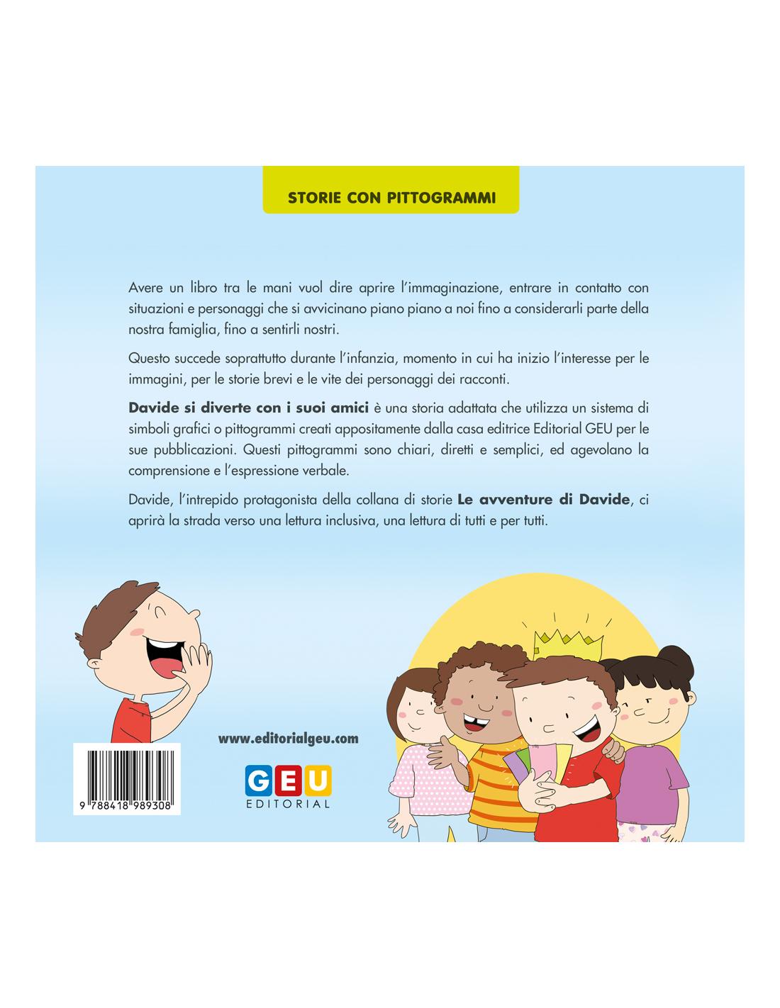 Davide si diverte con i suoi amici fa parte della collezione Il mondo di Davide, una serie di racconti con pittogrammi creati per facilitare l'accesso alla letto-scrittura alle persone con difficoltà di comprensione della lettura.