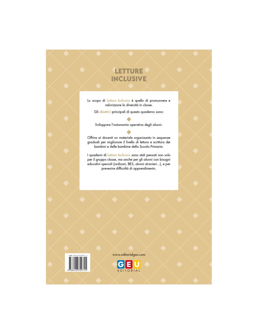 Inoltre, questi quaderni di rinforzo motivano il bambino con letture semplici e vicine, legate alla vita di tutti i giorni con le quali gli alunni si sentiranno completamente identificati.