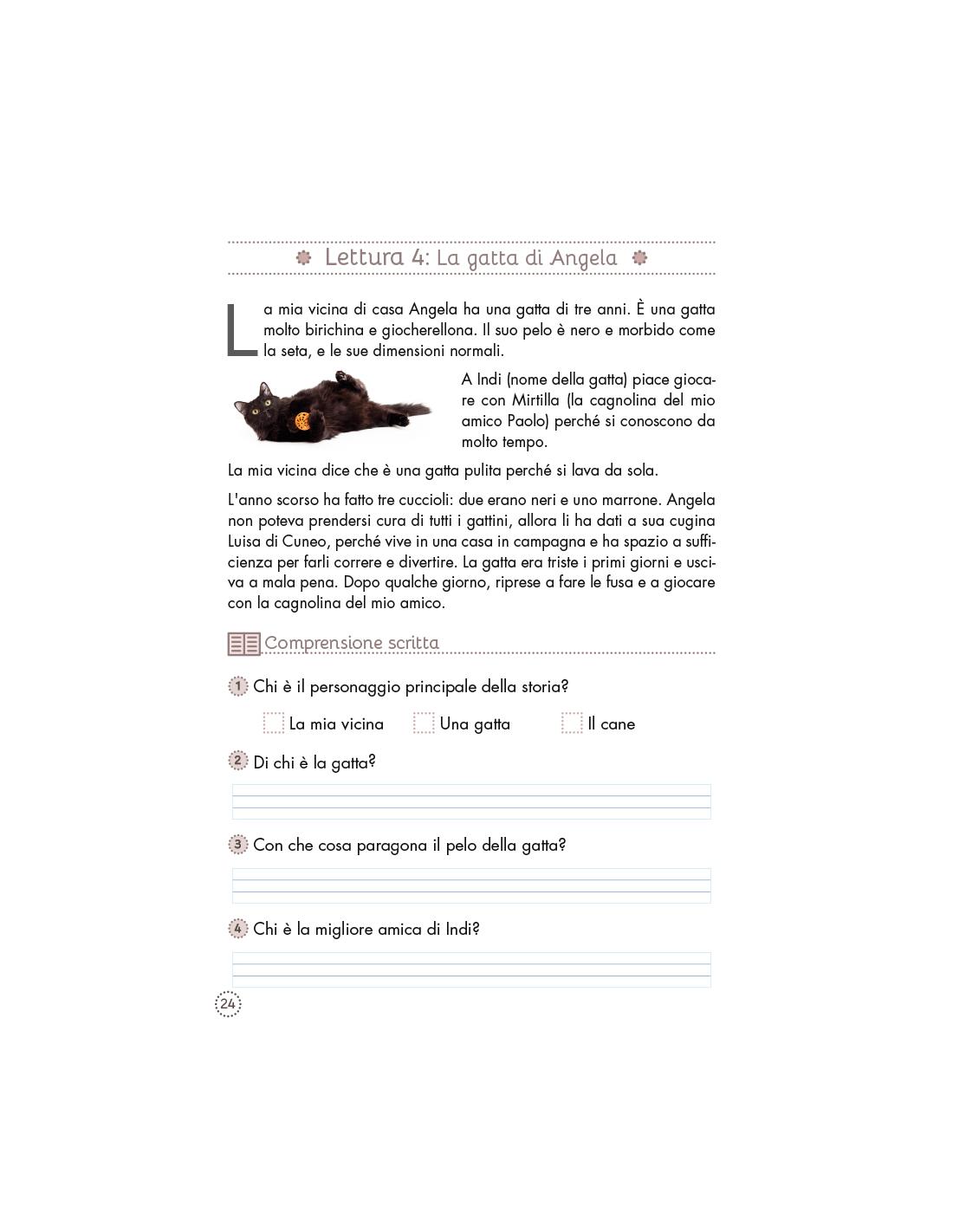 È un materiale super completo, che non solo lavora sulla compressione del testo, ma anche il lessico, l'ortografia, la grammatica e, naturalmente, la lettura e la scrittura.