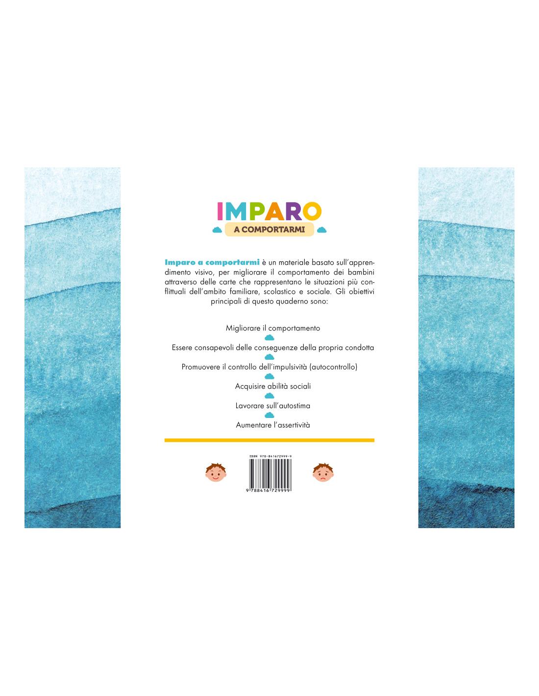 Imparo a Comportami è un quaderno di lavoro basato su un modello di apprendimento visivo, sviluppato in modo specifico per migliorare il comportamento del bambino, attraverso esercizi con tessere che rappresentano le situazioni più conflittuali e comuni, spesso presenti in ambito sociale, scolastico e famigliare.